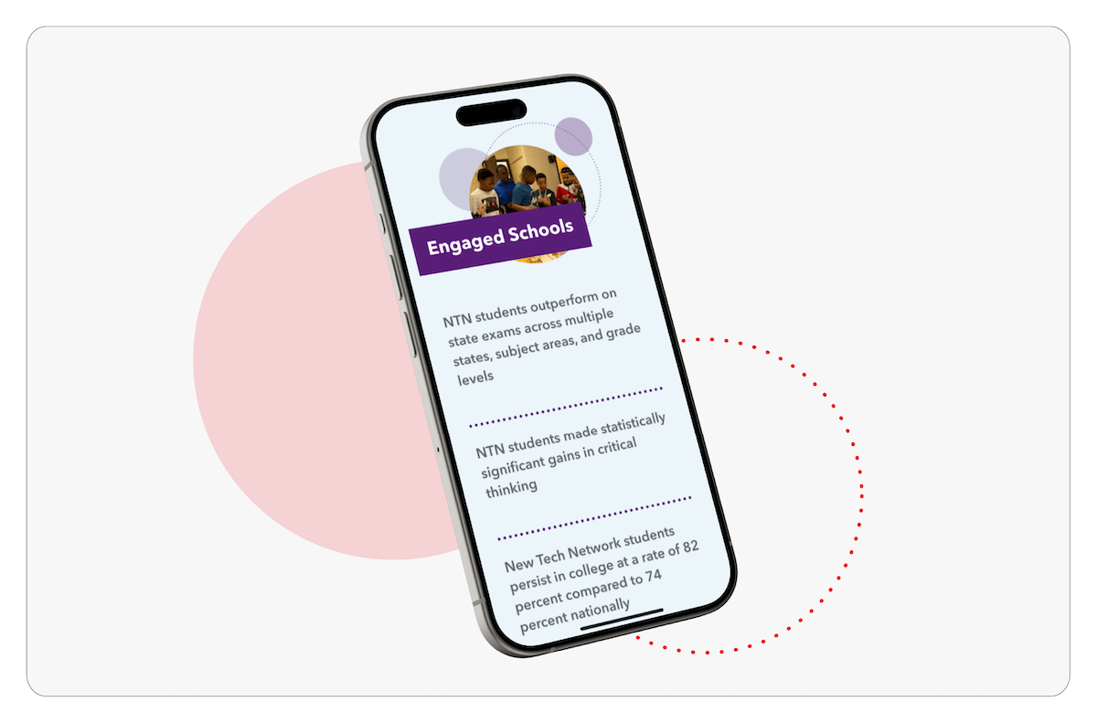 New Tech Network (NTN) has helped schools reimagine learning for decades. But even the most innovative systems need structure to scale. Friday partnered with NTN to bring order, focus, and voice to its growing ecosystem of services. Together, we built a service framework, refined the brand narrative, and mapped out a marketing and implementation strategy to sustain and amplify what NTN does best.